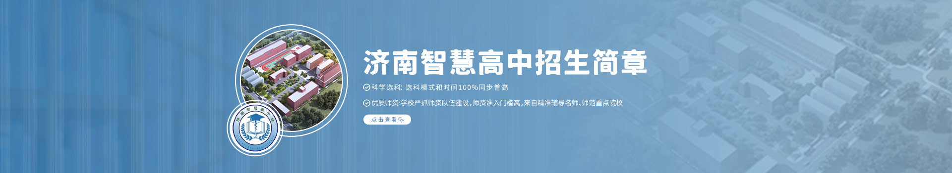 拨动良知的琴弦,用爱心和感恩之心去善待生活,修身养德,积极乐观,学做真人。扬起理想的风帆,用行动和智慧去追求人生目标,脚踏实地,刻苦学习,励志成才,请来济南智慧!济南智慧高中学校优势济南智慧高中部,积极贯彻国家教育部...