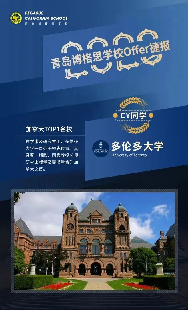 继埃默里大学、罗彻斯特大学、纽约大学、俄亥俄州立大学、香港理工大学、纽约视觉艺术学院等名校OFFER雨之后,博格思又迎来重磅好消息!AZ、GL、CY、JL四位同学摘得加拿大第一、2023USNews全球第18名的多伦多大学录取offer。