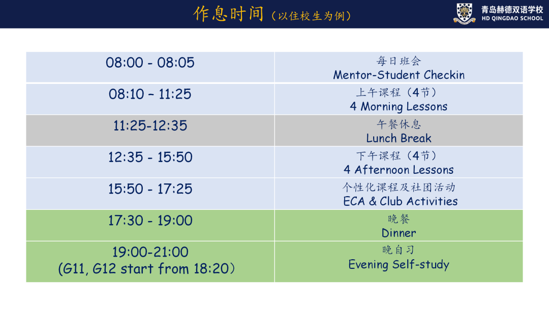 青岛赫德双语学校国际高中住校生作息时间是怎样的?青岛赫德双语学校培养学生面向未来的必备品格和关键能力。有家长咨询:住校生作息时间是怎样的?下面老师做一个简单的介绍,供大家参考。