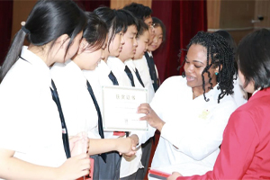 潍坊枫叶国际学校周凯校长、教导处王宾主任、英语中心孙拓主任给获奖学生颁发奖状和奖品。