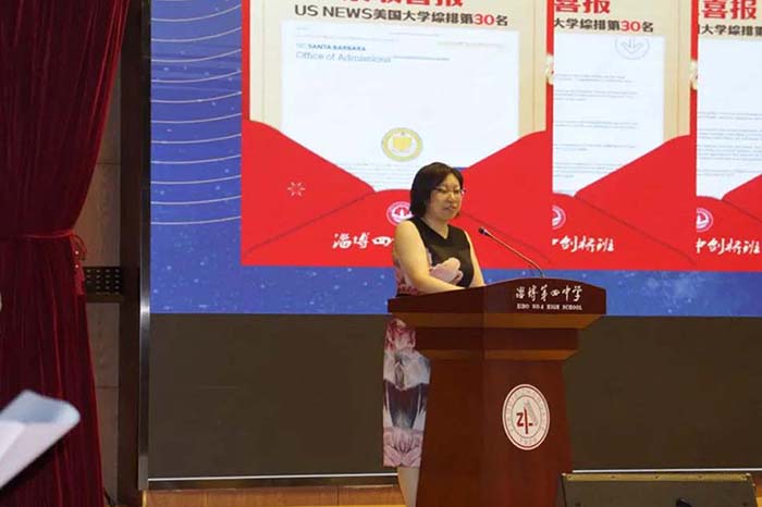 “国际化的教育因为其创新性确实有着许多特别的地方。但特别并不代表特殊,菁菁校园,“艰苦奋斗,自强不息”的校训是对剑桥班每一个学子的要求。总有一些品质是中外教育所共同看重的东西。这个时代,是追求个性的时代;同学们这个年龄,是张扬自我的年龄;国际化的教育,是中西合璧的教育。