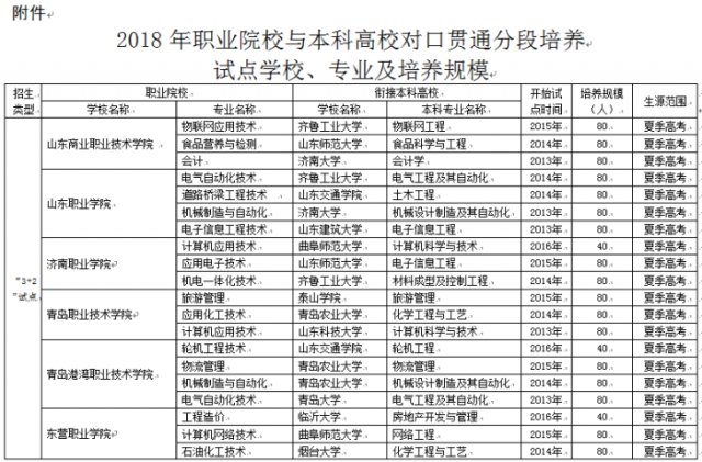 日前,省教育厅下发《关于下达 2018 年职业院校与本科高校对口贯通分段培养试点任务的通知》,确定了 2018 年职业院校与本科高校对口贯通分段培养试点学校、专业及培养规模。