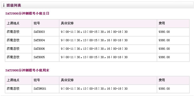 课程设置:含SAT精品词汇6课时、SAT阅读15课时、SAT语法12课时、SAT写作15课时、数学6课时+模考+名师点评6课时