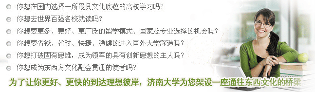 学生(专科起点或者专科大三在读)在济南大学完成中英、中加硕士衔接课程,专业课和英语成绩达到要求后,可直接赴英、赴加就读合作大学的硕士学位课程。该项目只需2年的时间(专科大三在读只需一年时间),比在国内节省数年的时间,即可取得国外名校的硕士学位,为有志学子提供了一条难得的成才之路。