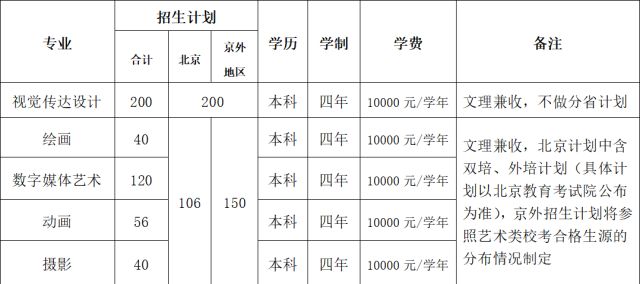 1.视觉传达设计专业不做分省计划,按照我校录取原则,全国排队;数字媒体艺术、绘画、动画、摄影4个专业按照合格人数做分省计划,按照我校录取原则,分省录取。具体各省招生计划以各省招办公布为准。