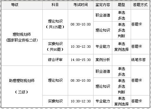 理财规划师二级证书考试科目:理论知识+专业能力+综合评审